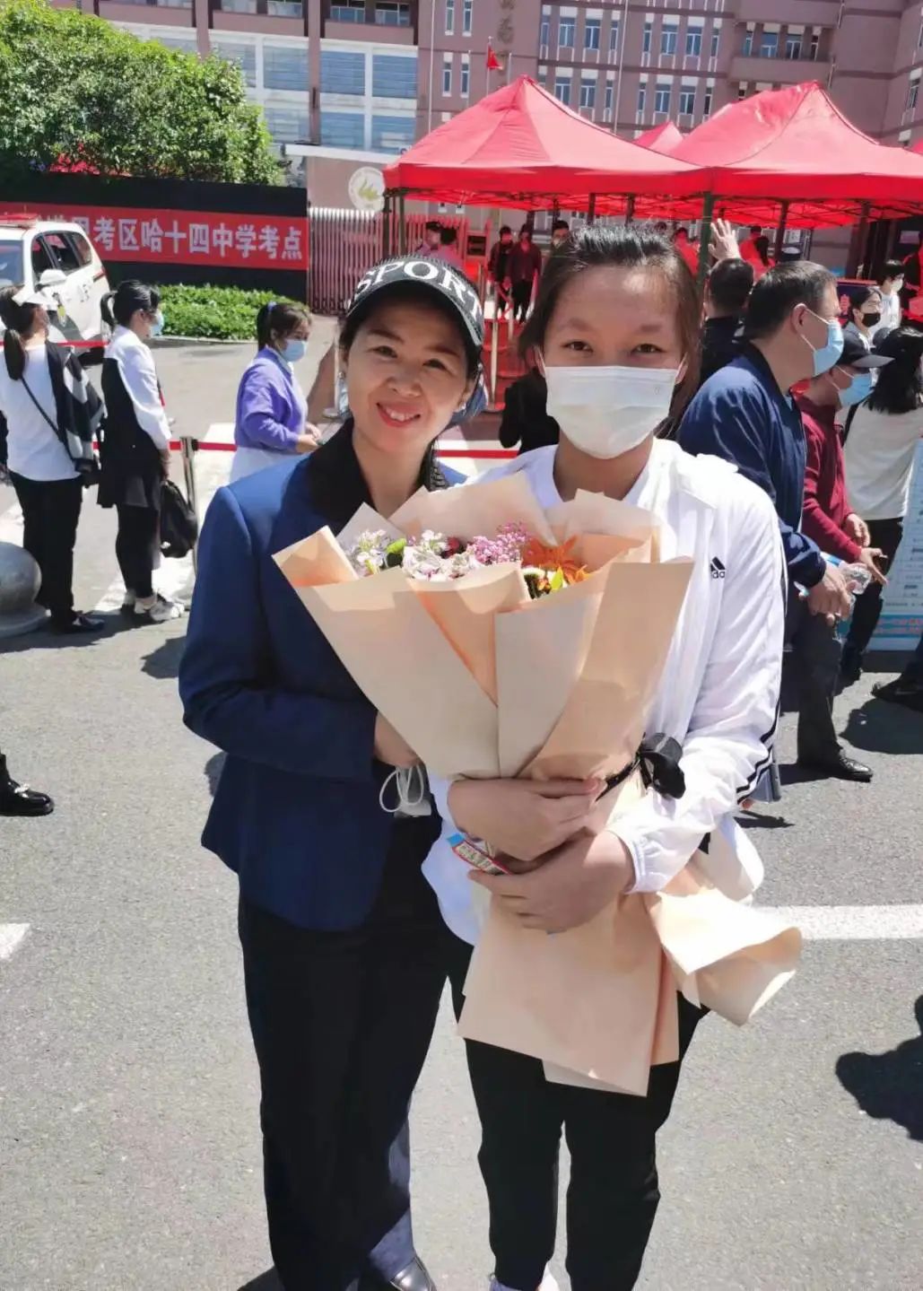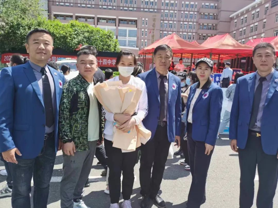 6月7日早9点,我们联企家人代表朱宝玉、赵刚、赵晓东、徐彦明、苑瀛集合在哈市第十一中学考点,依次为四十六中学于静雯(联企资助考生)、爱心家人许波的孩子、爱心家人高明的孩子、爱心家人于刚的孩子,分别到四个考点去高考助力,为孩子和家长送上美好祝福。